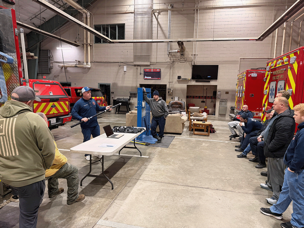 On January 22nd, personnel from Westminster learned about new technology to combat Electric Vehicle fires. This new nozzle also enables responders to be better prepared for fires in airplanes at the airport, unreachable fire in collapsed structures, and dangerous basement fires. This multi-purpose nozzle allows our responders be better prepared for modern fire emergencies that we are presented with more and more every day. Thank you to Manchester VFD for allowing us to demo this nozzle.